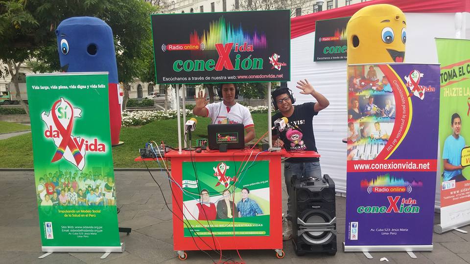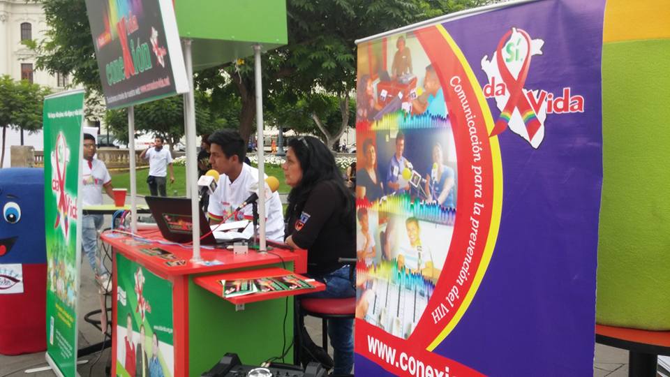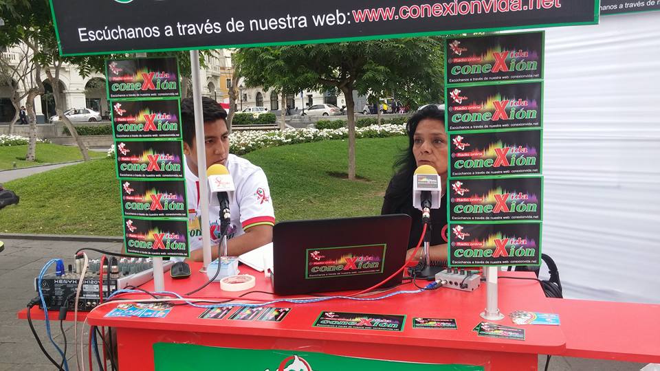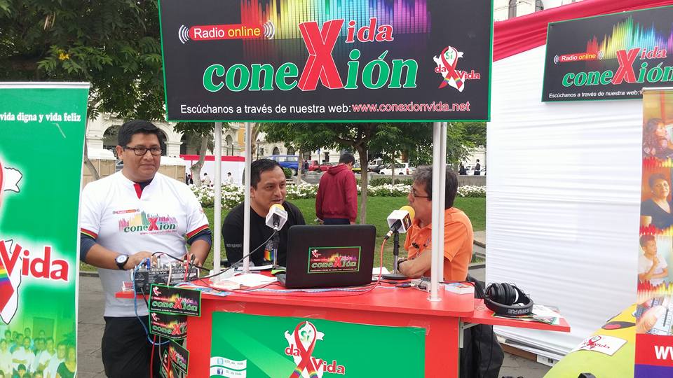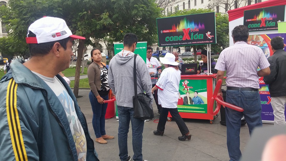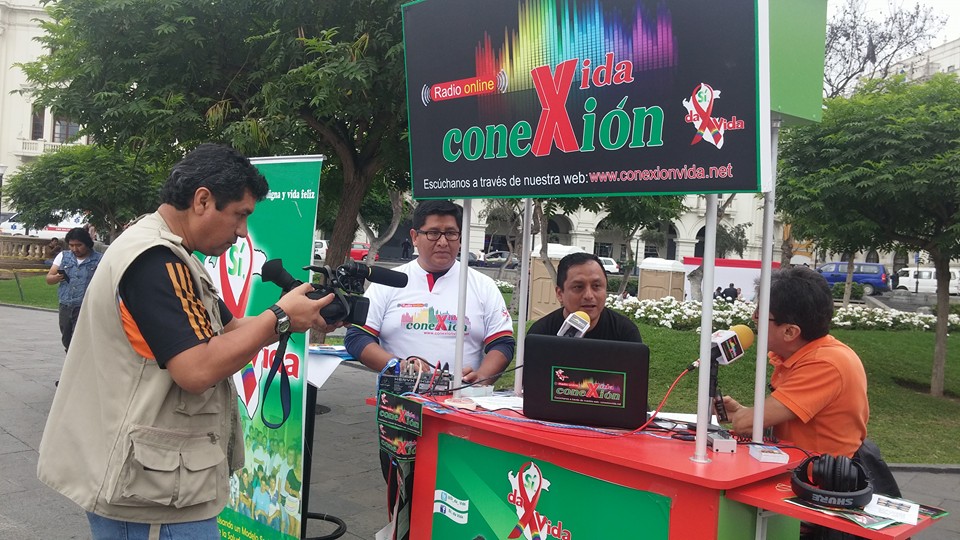 Lima, Perú .- Las cabinas de radio Conexión Vida, se trasladaron a la plaza San Martín, del Centro histórico de Lima, donde se desarrolló la Feria Informativa de Prevención del VIH que fue organizada por el Ministerio de Salud y las organizaciones sociales.