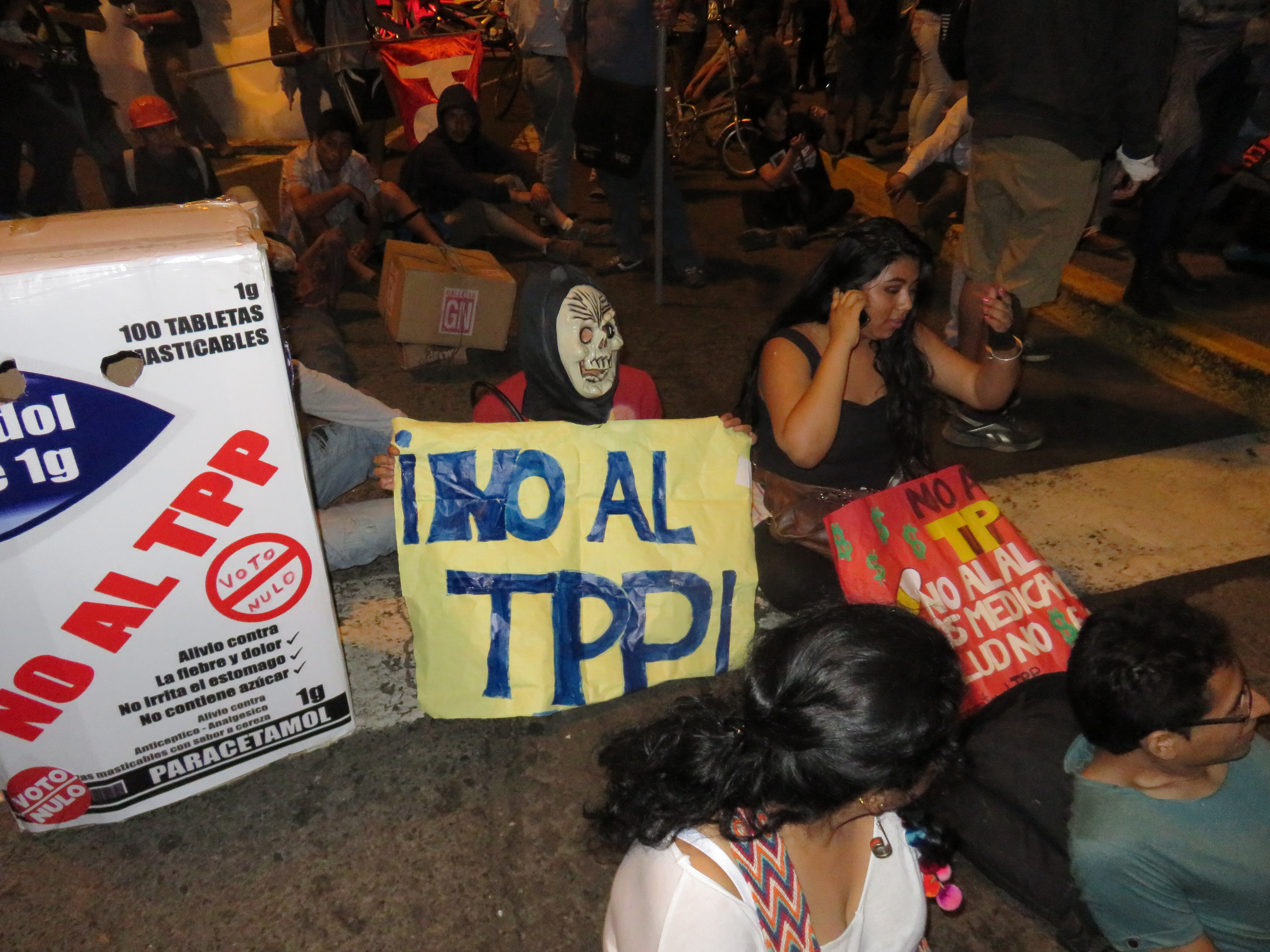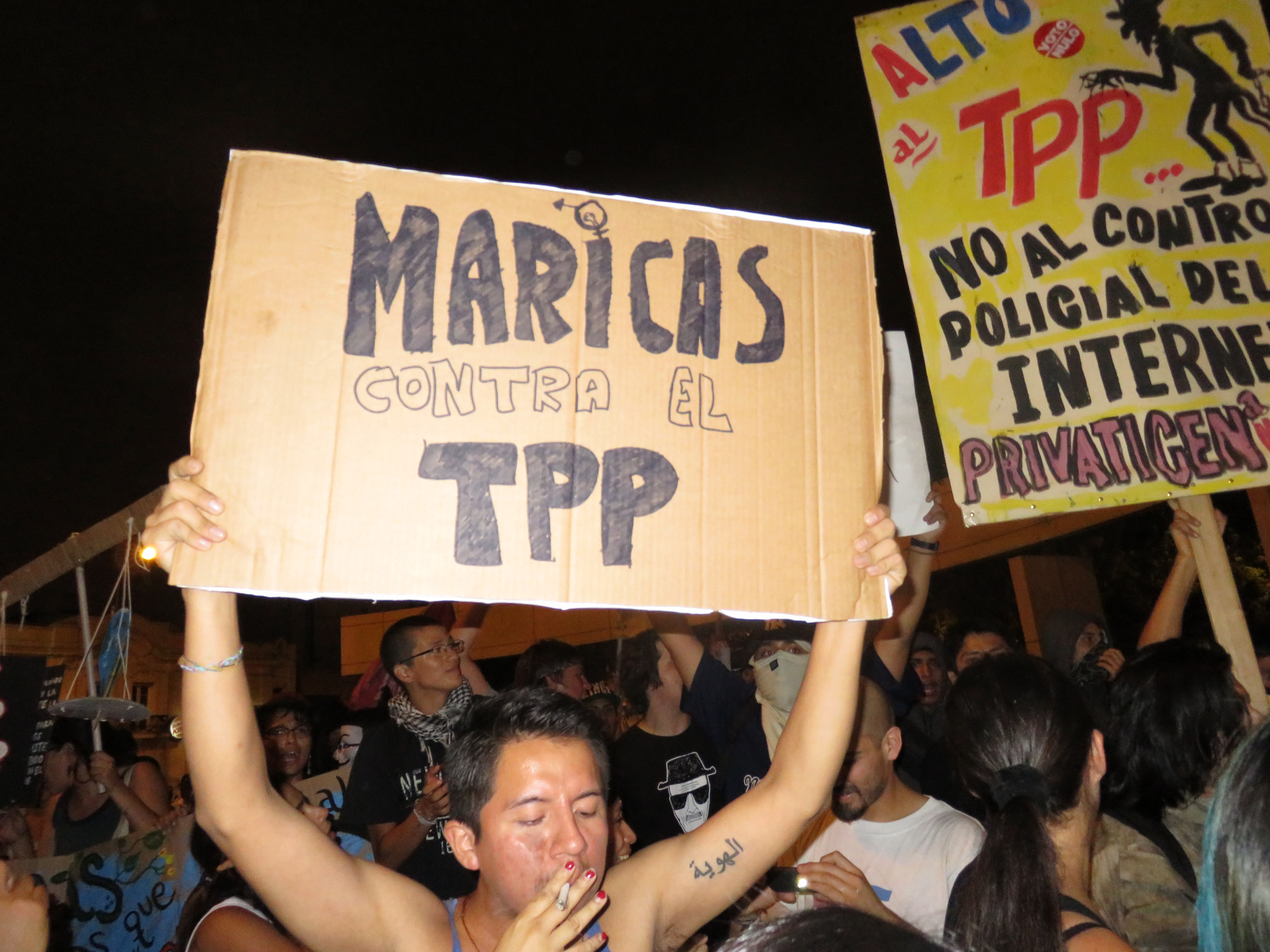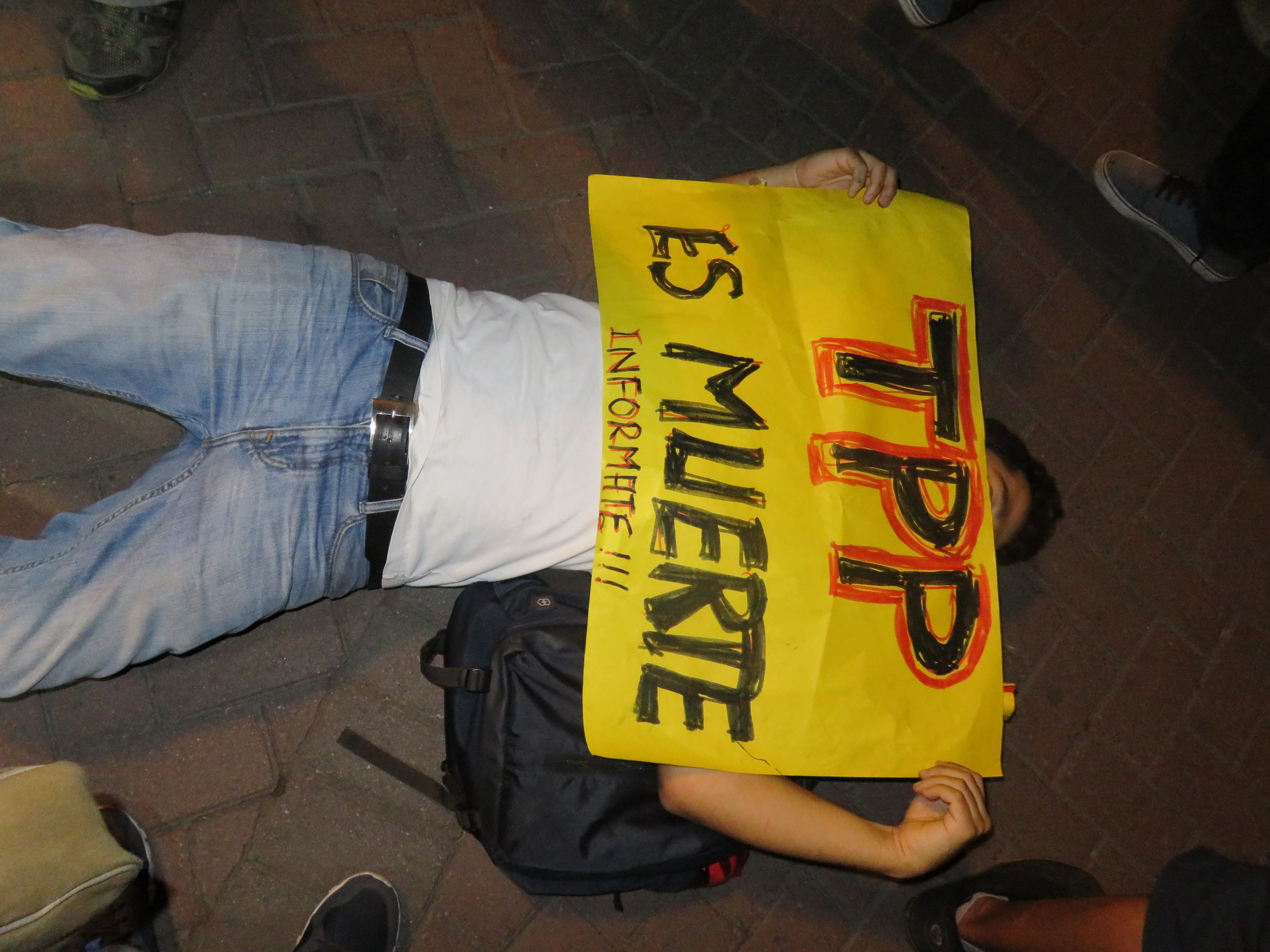 Los manifestantes, indican que el TPP, es un acuerdo negativo que traerá consigo desventajas en temas de salud, medioambiente, internet y otros derechos.