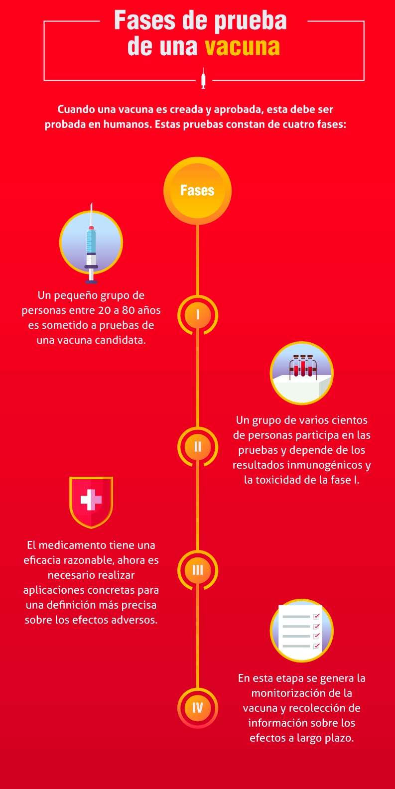 Una vez la vacuna ha sido aprobada, es momento de hacer pruebas en humanos trabajado en 4 fases.