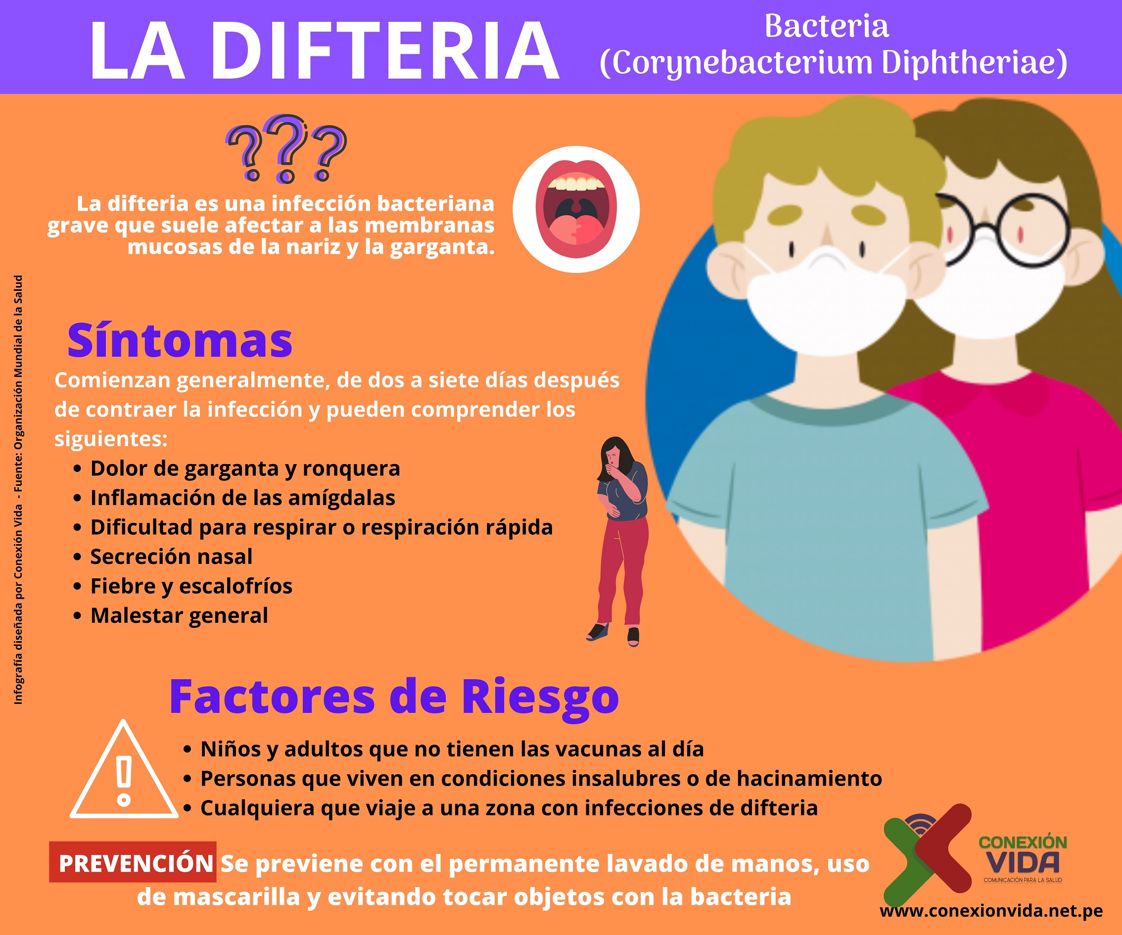 El director de intervenciones estratégicas del Ministerio de Salud (Minsa) comentó que si mantenemos el uso de la mascarilla y el distanciamiento social recomendado para evitar el covid-19 nos estaremos protegiendo también contra un posible caso de difteria porque se propaga de forma aérea.